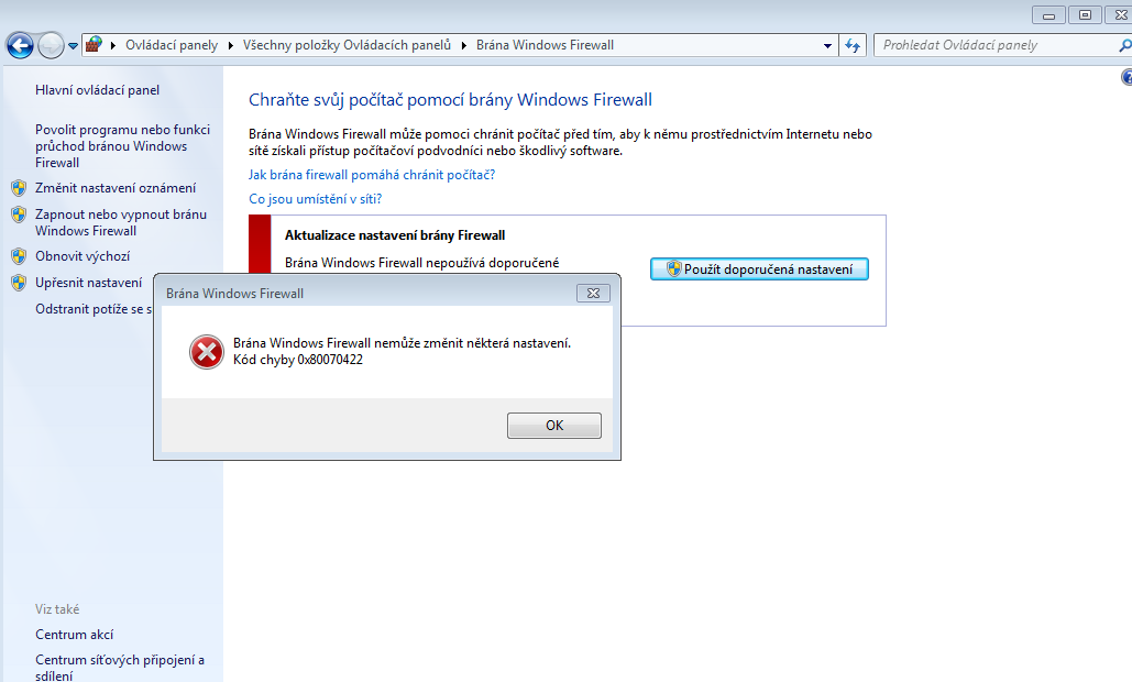 Nejde mi zapnout firewall
