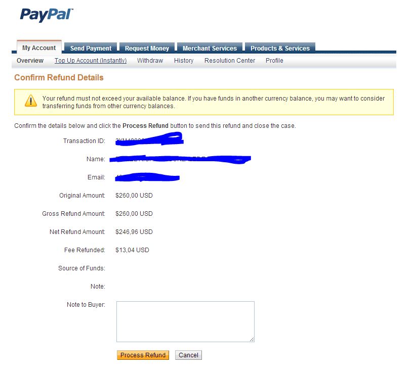 A ostalo ti nieco na paypal ucte alebo tam mas teraz 0,00? Ak ti nieco ostalo tak zrejme uz ten refund prebehol plnohodnotne. Ak tam mas teraz 0,00 tak zrejme ten refund prebehol len ciastocne pise ti to ze nemas dostatok penazi na PLNY refund.