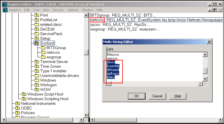 screen je snad z w2000 - z xp regedit nemám celkový pohled. zajímavé je, že náhodné názvy z netsvc (… nový