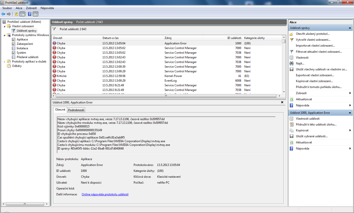poslední dobou se mi stává, že se PC sám restartuje (BSoD) nebo v lepším případě program přestane pracovat. Když jsem se podíval do prohlížeče událostí, tak jsem se zděsil. Takto by to asi nemělo vypadat, ne? (viz obr). Tak se ptám jek se těch chyb zbavit? První (zhora, nejmladší) je na obrázku, u druhé se píše: