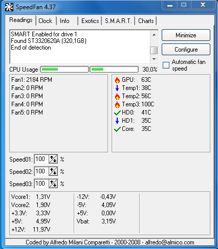 Proboha! Grafika má v klidu těch 65 a v zátěži 95 stupňů, to už je jó horko, ale nevím co se s tím d…