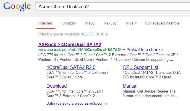 | První odkaz v Google na dotaz: Asrock 4core Dual-sata2