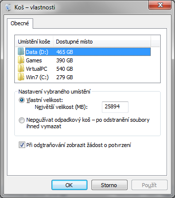 aha a kde to lze nastavit velikost koše? a to se saže uplne nebo se to nekde presune do skrytych složek?