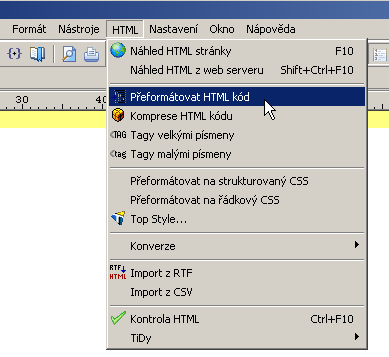 V menu Upravy jsou obecne funkce. Funkce, ktere se vztahuji k HTML jsou v menu HTML ;-) Dalsi moznos…