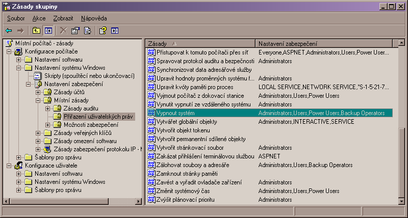 - p. Brtníka, jen se to oprávnění Vypnutí PC musí pro skupinu Users musí nastavit v: Vynutit vypnutí ze vzdáleného systému.