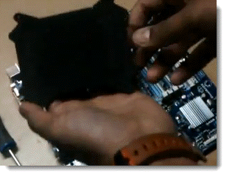Nechají se ty okraje, fungují jako pružná podložka mezi kovem a samotnou deskou. I po složení je zajištěn dostatečný přítlak chladiče k rozvaděči tepla na CPU a není třeba nějaké extrémní přitažení.