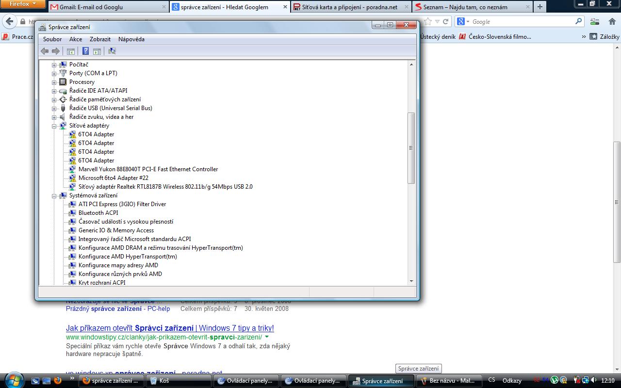 koukni do spravce zarizeni jake sitove karty mas ve svem notebooku search