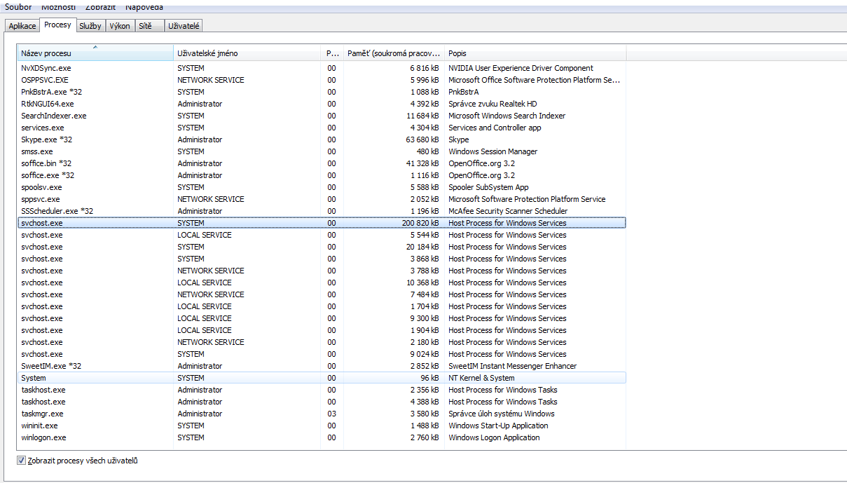 co je pod kterým svchostem, vypíše příkaz: tasklist /svc ještě k obrázku: ten popisek vpravo není… poslední