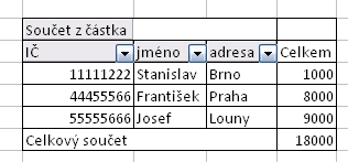 edit: anebo si z IČ & " " & jmeno & " " & mesto uděláš další položku, ze které uděláš levou stranu kontingenčky.