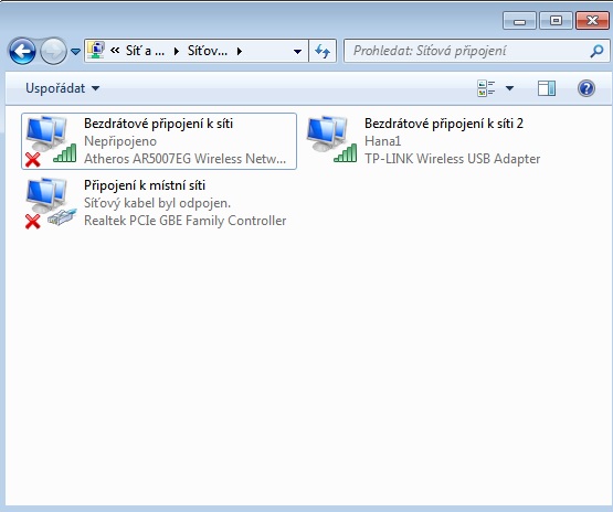 ok, když odpojíš ten tp-link, klikneš na tu wifi ikonku vpravo dole, naskenuje to nejaké sítě?