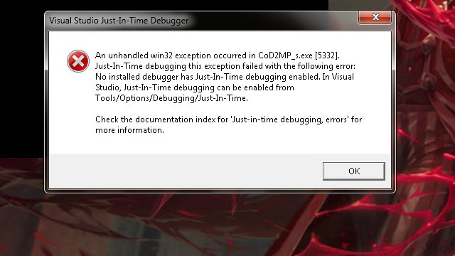 Chyba nastala tim just in time debuugerem. Uz 3x sem reinstaloval COD4 a stejna stejna chyba, Chyba…