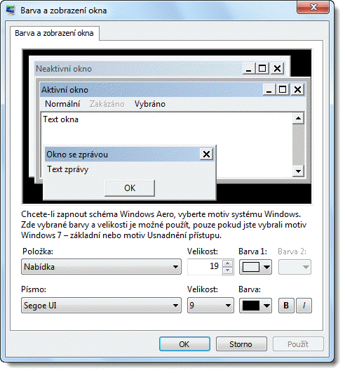 Musíš v tom okně vybrat (kliknout na to myší, nebo vybrat v roletce), u jaké položky chceš tu barvu…