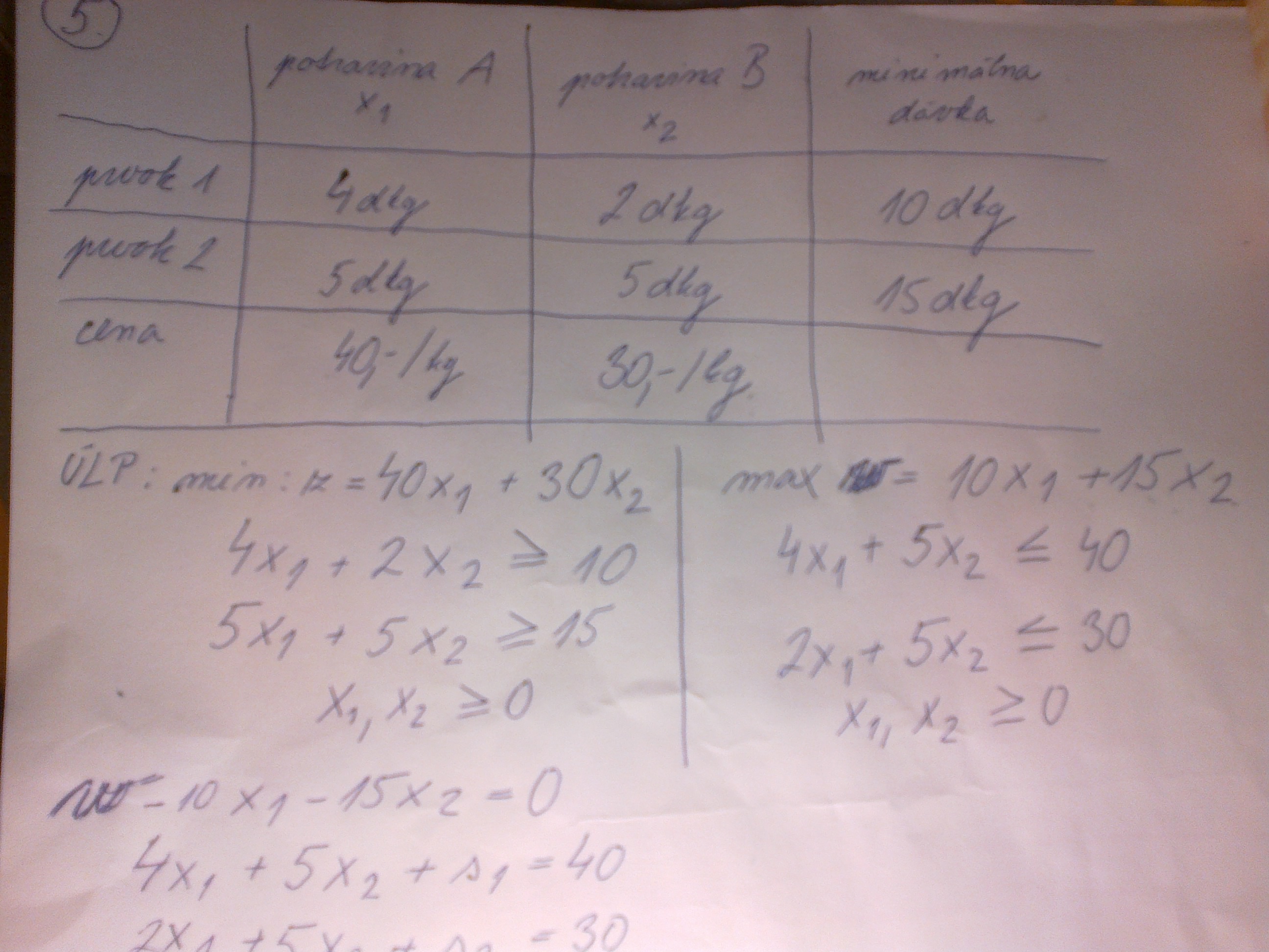 neviem ale jak si dosiel na to max w = 10 x1 + 15 x2 resp. na cely ten pravy stlpec? mi to nedava zm…