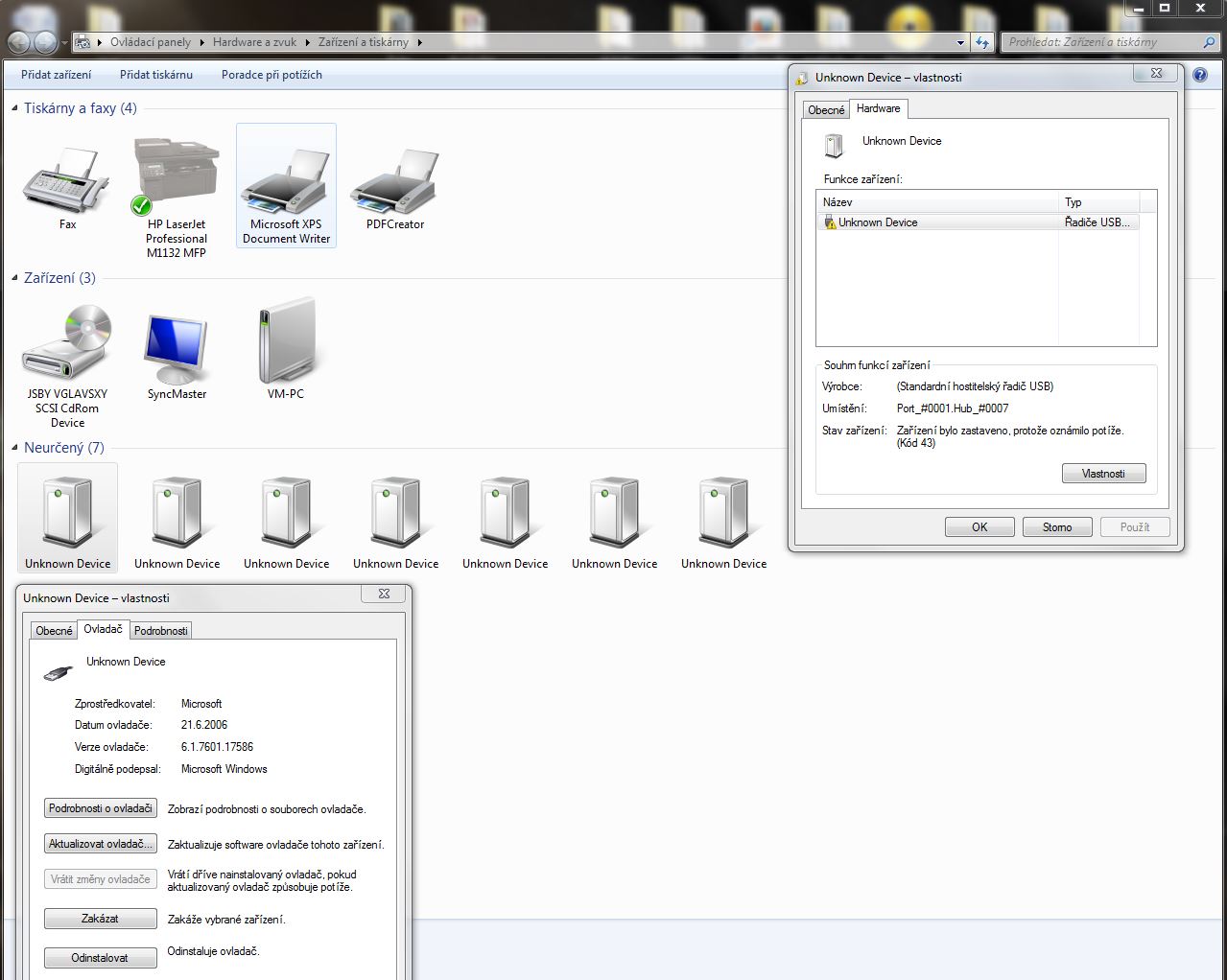 dnes ráno mi z ničeho nic přestaly fungovat všechny USB porty. Standardně používám operační systém Windows 7, ale na druhém HHD mám na hraní Ubuntu. Restartoval jsem a spustil pro zkoušku Ubuntu, ale ani tam ani jeden USB konektor nefungoval. :-( Hlásí to hlášku: zařízení bylo zastaveno, protože oznámilo potíže. (Kód 43)