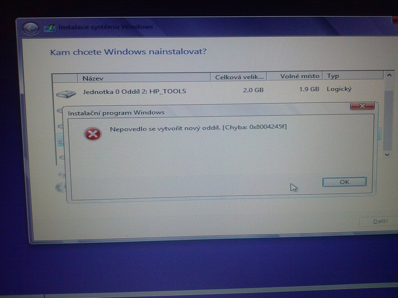 v tom pripade instalator nevie vytvorit novy 100MB oddiel, a kedze pouzivas len logicke oddiely tak logicky nemoze byt aktivny alebo aspon neviem o tom ze jak by to akoze malo fungovat s logickymi oddielmi. Co to pise teda teraz ked je ten 100MB oddiel zmazany a vyberes mu instalovat na ten logicky oddiel a das mu ze "dalej"?