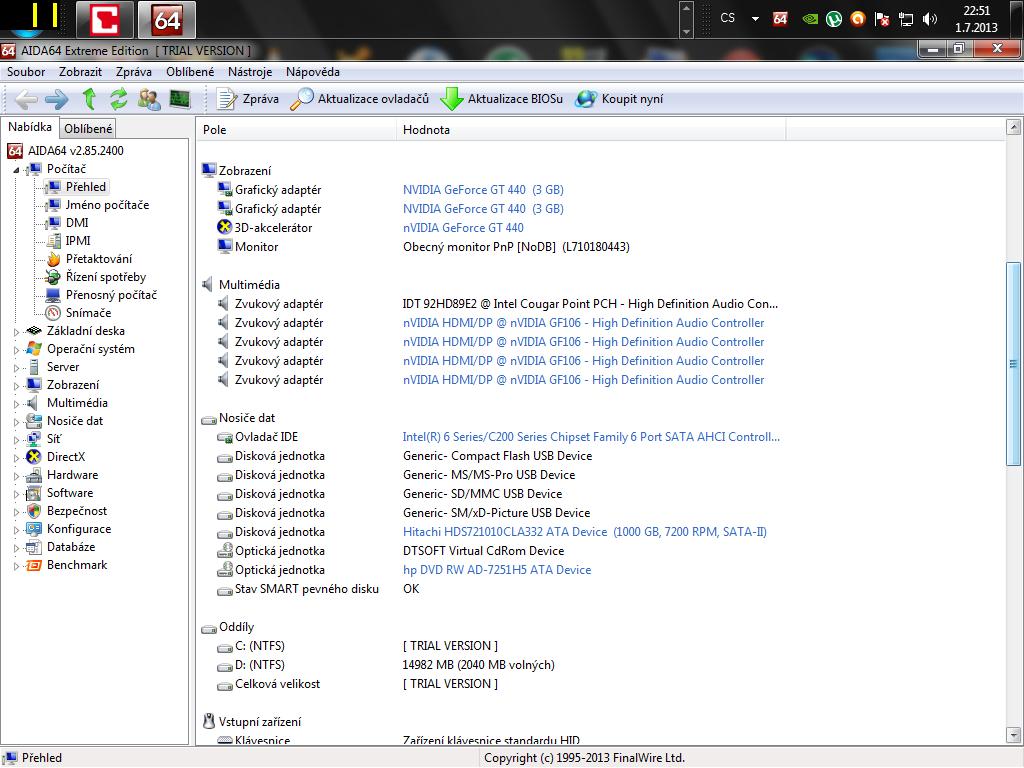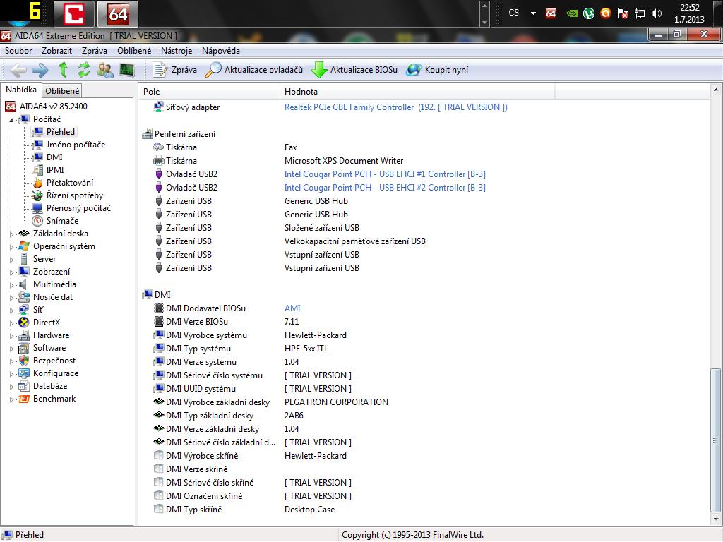 Použité programy: Super Ovladač,, Driver Genius,, Everest Ultimate,, Everest,, Driver Agent,, AIDA64 Extreme Edition,, TuneUp Utilities a nevím co ješte všechno. :.(