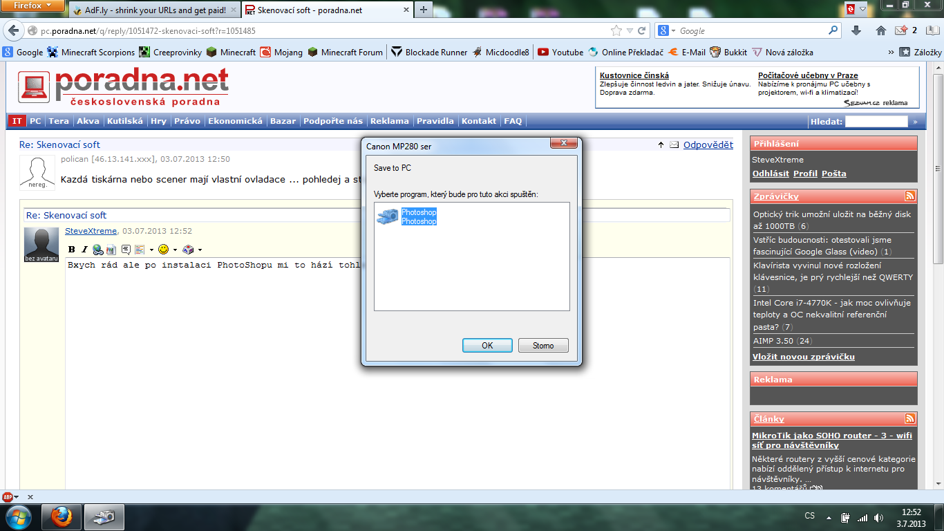 Bych rád ale po instalaci PhotoShopu mi to hází tohle....jo mimochodem po kliknutí na photoshop to N…