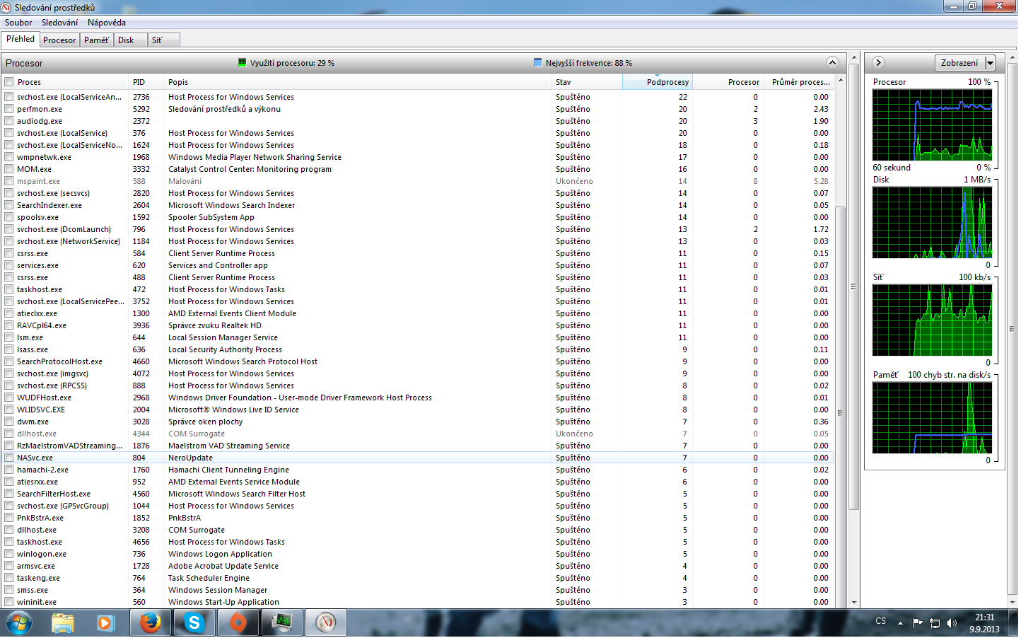 ve správci zařízení setřiď procesy podle zabraného %cpu - a sleduj co se děje. vyjeď si log z hijack…