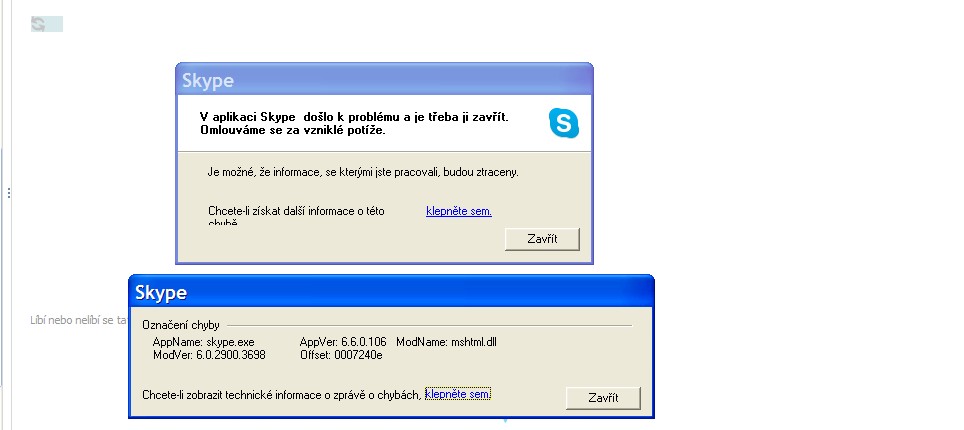 Hazí mi to u všech chyb, jak u normalniho Skype 6.6 tak u tohodle(naistaluju,chvily jede a po dalsim…