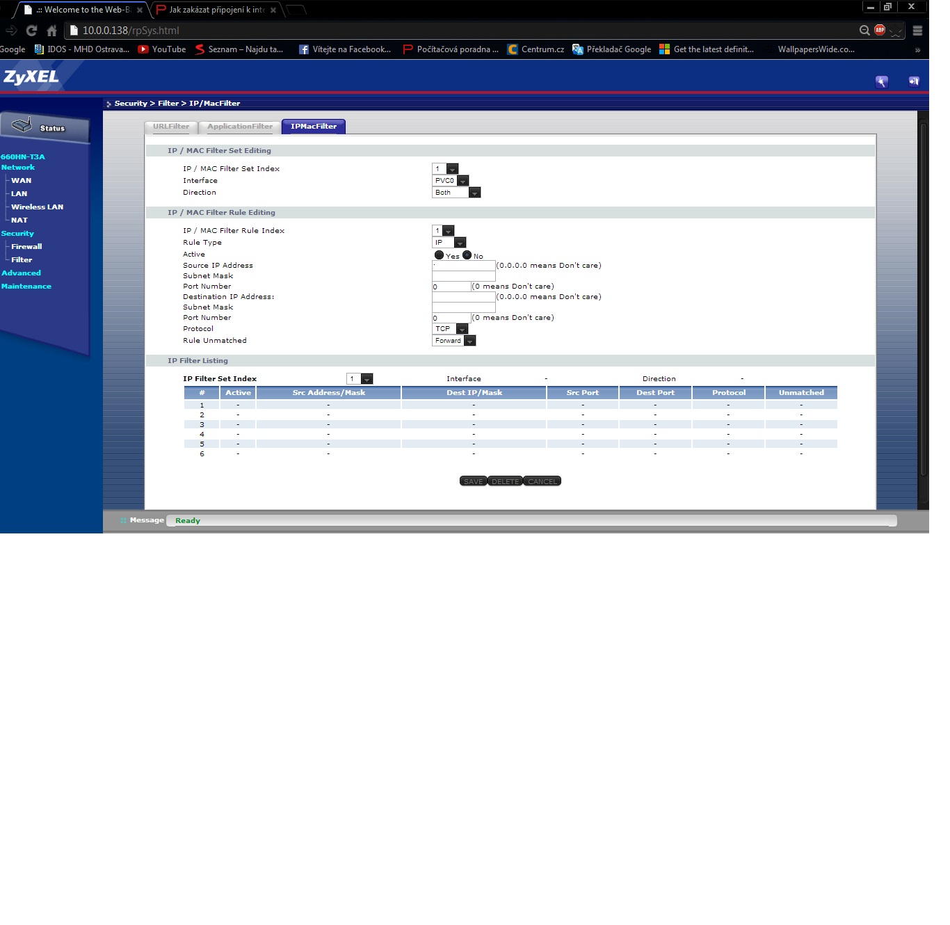 Potřeboval bych vypnout internetové připojení přes router/cmd na té vistě. Nemůžu vypnout připojení tím že vytáhnu kabel nebo vypnu uplně router protože by o tom ten člověk věděl. Ale daná osoba nerozumí věcem jako rychlost připojení a down speed a up speed. Pořád něco stahuje (už mu odešly 3 počítače kvůly tomu) Jenže komu není rady tomu není pomoci. Tím pádem mu pomůžu tak trochu odsuď. Jak tedy mohu zakázat připojení k internetu přes router/cmd. Typ routeru/modemu nejsem si jistý jaky je mezitím rozdíl je Zyxel P-660HN-T3A. Děkuji za každou nápovědu.