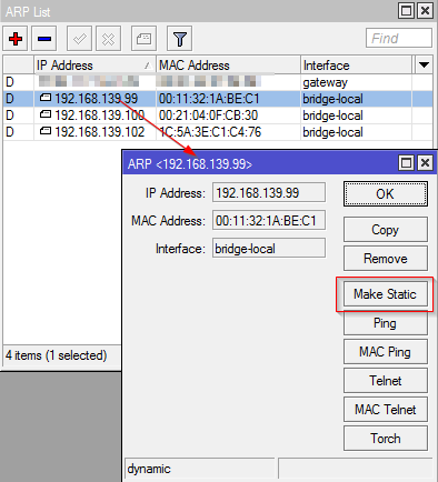 Pokud pujdes do IP / ARP, tak i tam muzes po rozkliknuti (pripadne rucnim pridani) nastavit statickou IP adresu