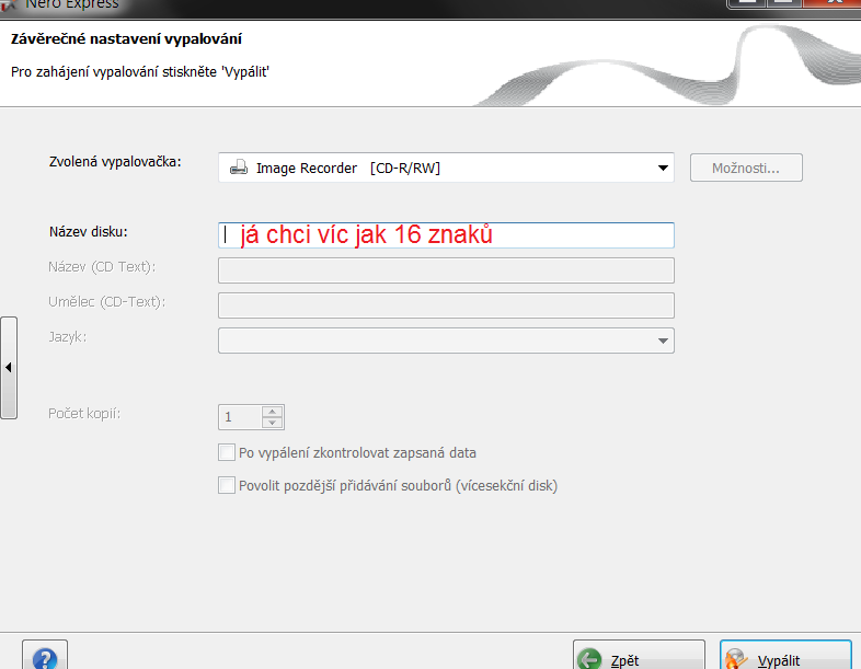 Ahoj všem, těm kdo pálí v NERU. Někde jsem četl jak prodloužit název disku při závěrečném nastavení vypalování.