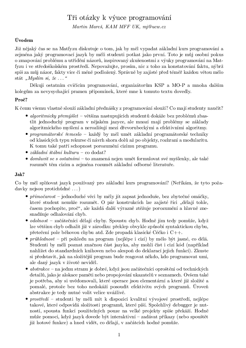 " Tři otázky o výuce programování "