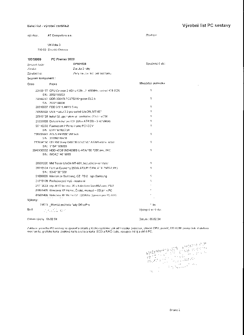 Dobrý den, dnes jsem se dostal po delší době domu, a vzpoměl jsem si, že mám schovaný záruční list svého PC. Jestli by to bylo k něčemu dobré, tak číselné označení modelu je: 10310009 S/N: DP001026 a datum výroby: 2/2004.