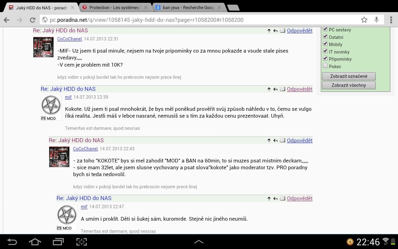 -Chodim sem jako navstevnik v mem volnem case, ale vsimam si vic a vic ze se tu hodne zacinaji lidi urazet a to i "MOD" kteri pouzivaji ponizovaci metody a hrube sproste slova, aniz by za to nesli zodpovednost.