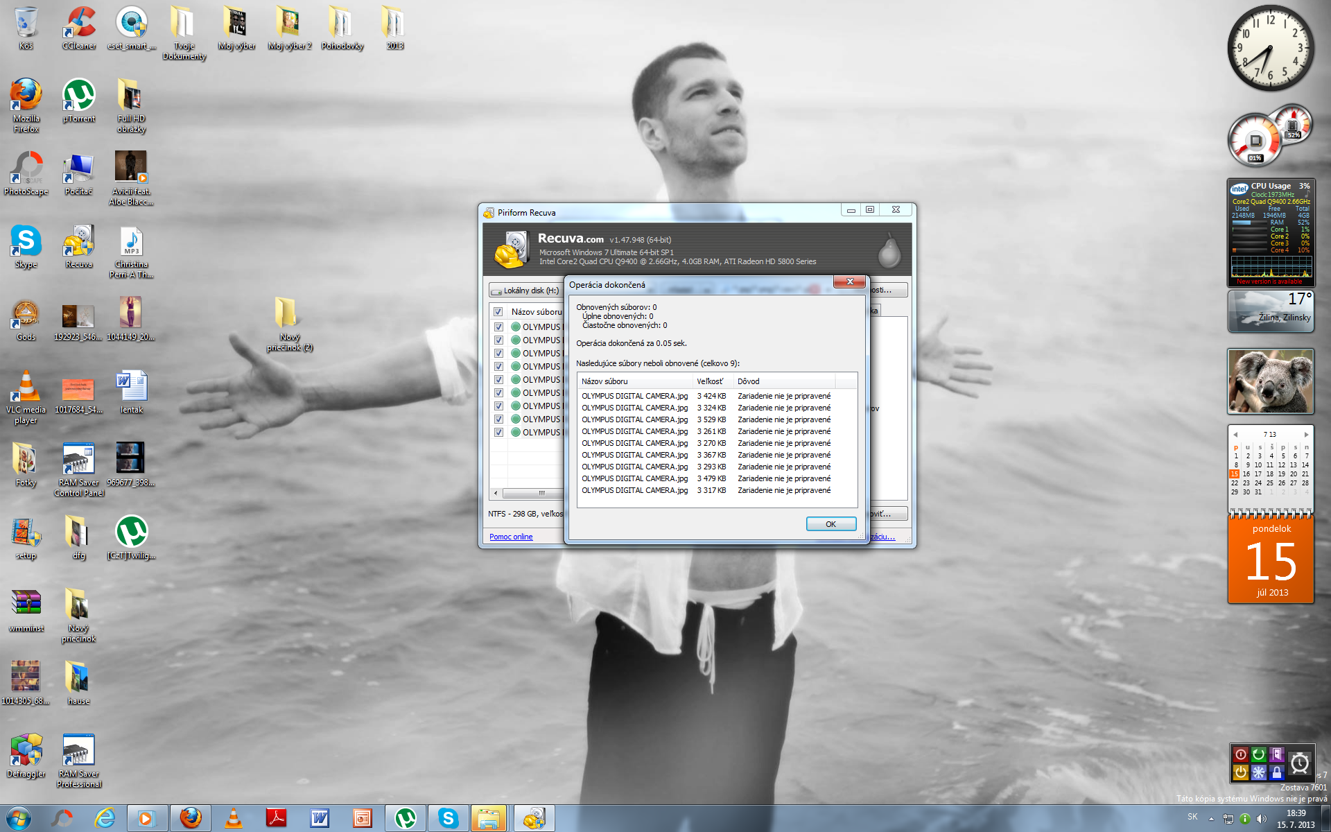 "zariadenie nie je pripravene" - skus spustit ten recuva pomocou pravy klik -spustit ako spravca. Ev…