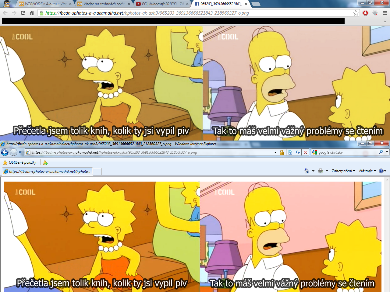 Zdar, nedávno, když jsem na facebook uploadoval jeden obrázek, tak jsem si všiml, že v prohlížeči Chrome se ty obrázky pouze na facebooku zobrazují tak nějak vybledlejc, ostatní prohlížeče ty obrázky zobrazují normálně. Ale je to divné protože kámošovi se to zobrazuje v Chrome normálně. Přikládám ukázku. Vubec netuším čím to může být, v nastavení nic nevidím nastavené špatně, tak nevím. Poradíte prosím někdo, jak nastavit normální barvy v Chromě ?