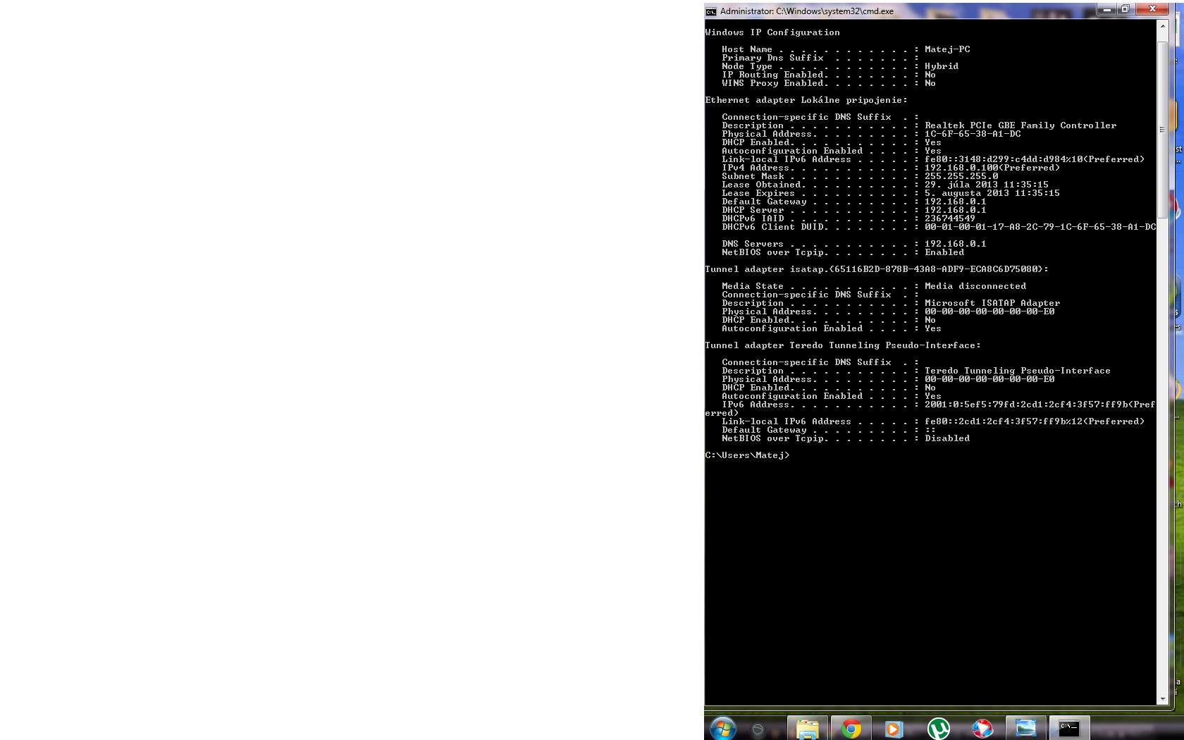 výpis nastavení sítě: ipconfig -all je stále tajný...