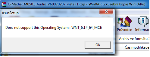 Píše mi to : Does not support this OS :WNT_6.1P_64_MCE