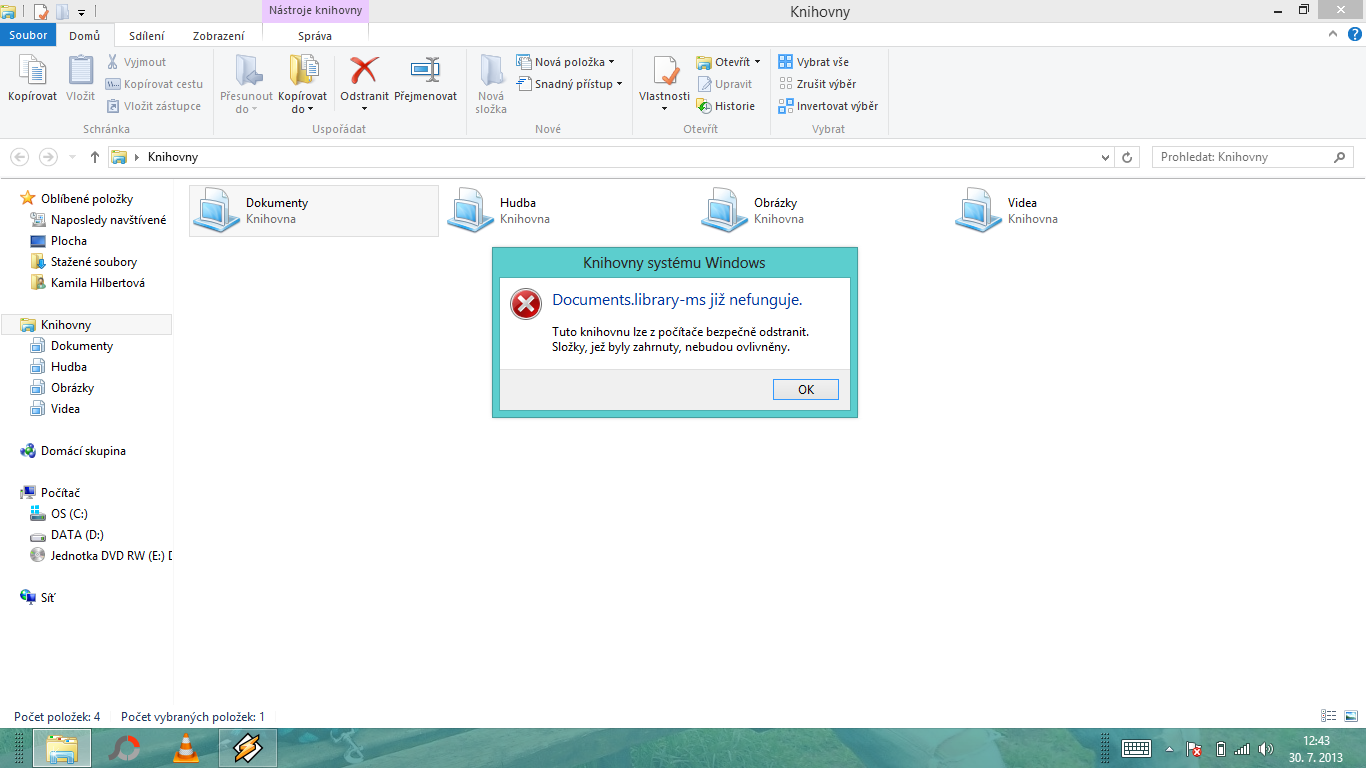 Vymazání dokumentů Windows 8