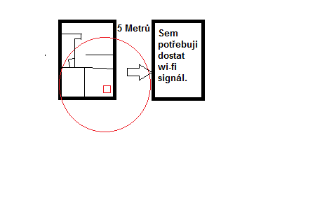 Níže přidám obrázek červené kolečko je +/- velikost signálu, malý černý čtvereček je router,