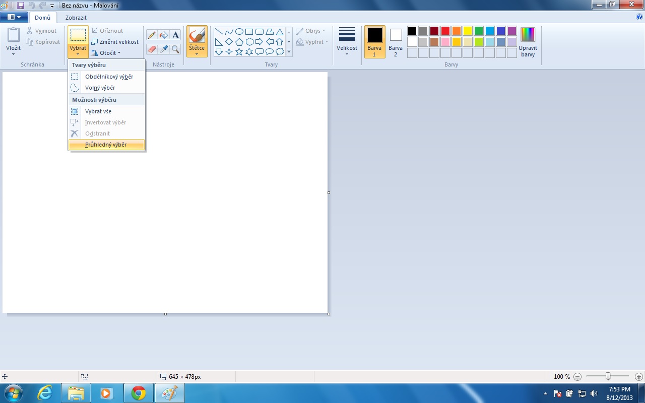 ja myslím že to tam je,,, jak mas ten "obdelník výbrat" nahoře v levo tak klikni na šipku a dej pruhledný výběr