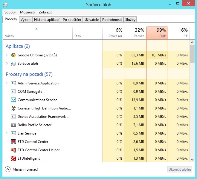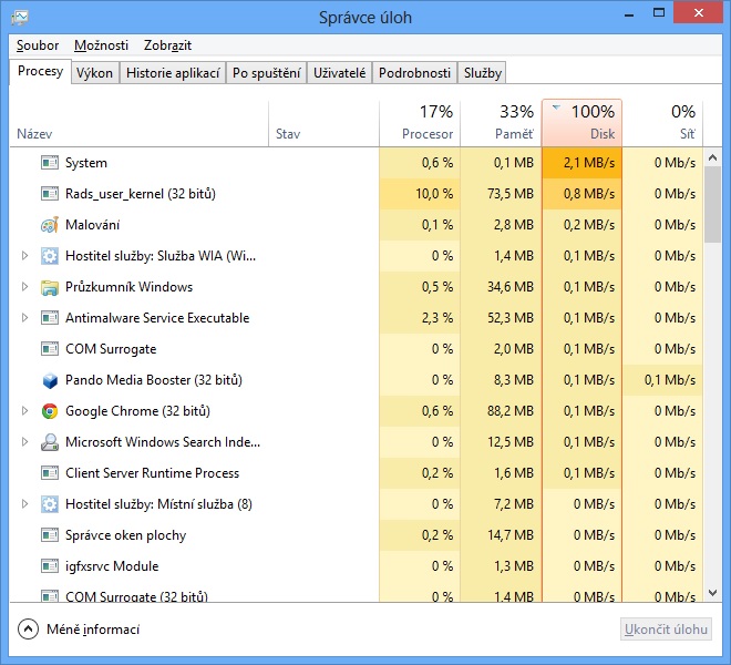 čau mam problém nevím čím to je ale po nainstalovaní W8 šlo všechno v pohodě, ale po RR se disk rozjel do 100% :O někdy se to díky tomu sekne