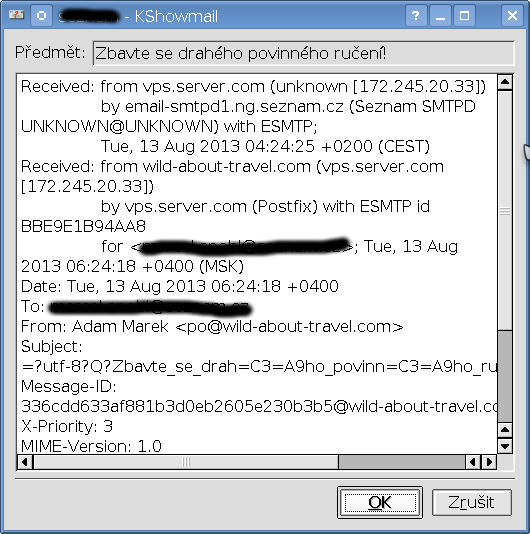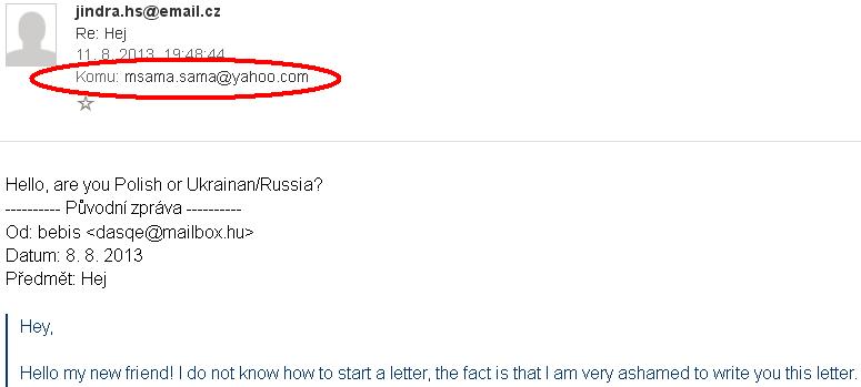 Můj dotaz se týká právě e-mailu. Dostal jsem takovýto mail zřejmě od nějaké Rusky. Zkusil jsem ze srandy odpovědět a pak jsem zjistil, že odpoveď "komu" je jinému mailu, než jaký je mail původní zoprávy "Od".