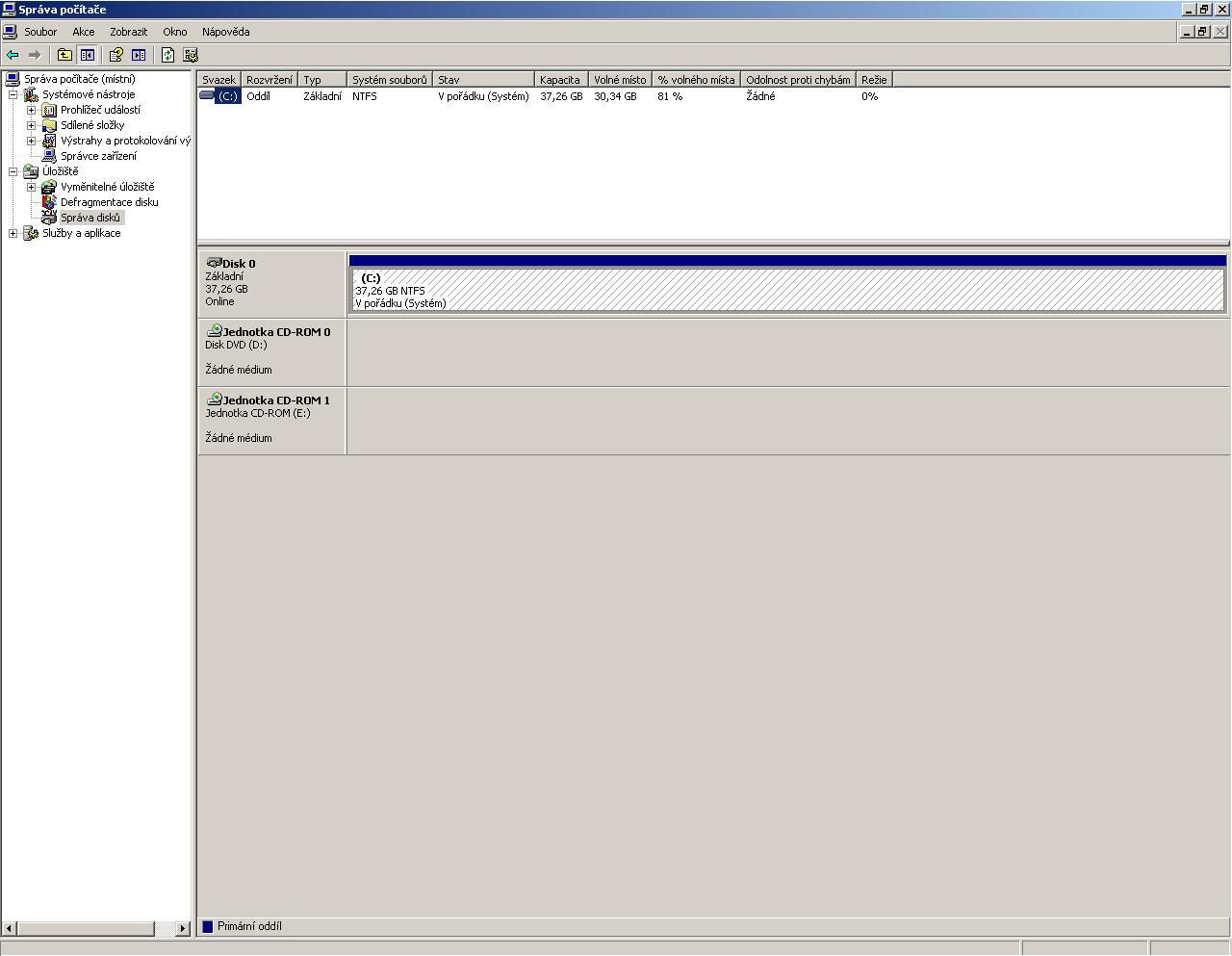 Když jsem se vrhl na můj idiocký nápad přeinstal systému, tak tam bylo XP. Já jsem to přeinstalovával také na XP. Instalátor mě varoval, že ne disku je předchozí verze. Byl tam pouze jeden oddíl (C=40 GB)