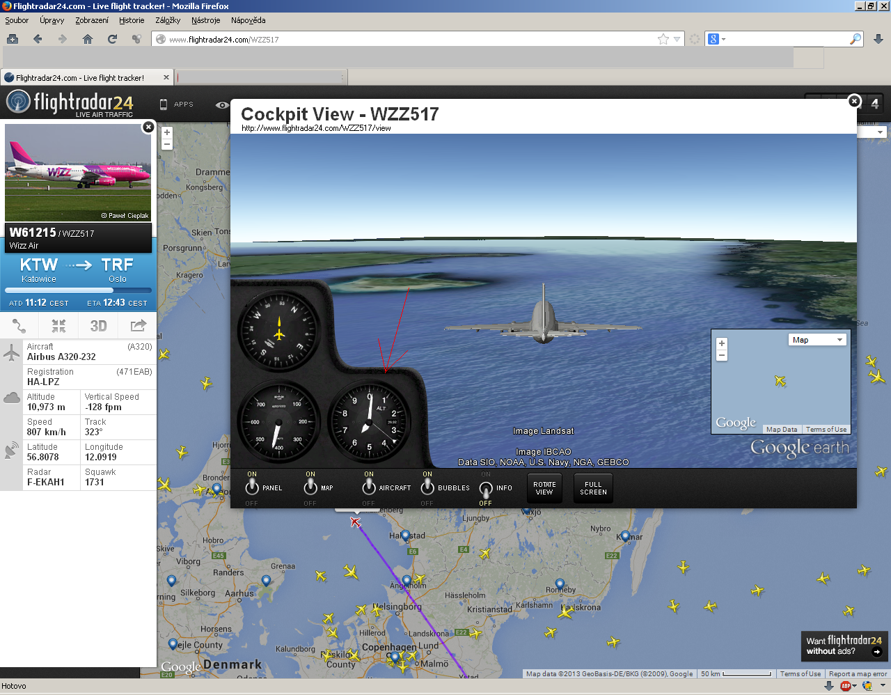 | ALT, takže altitude, výška nad mořem. Většinou se to udává u letadel ve stopách. Vlevo vidím 10 973… Potkan007 20.08.2013 12:31 |