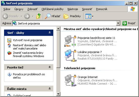 otvor okno sieťové pripojenia