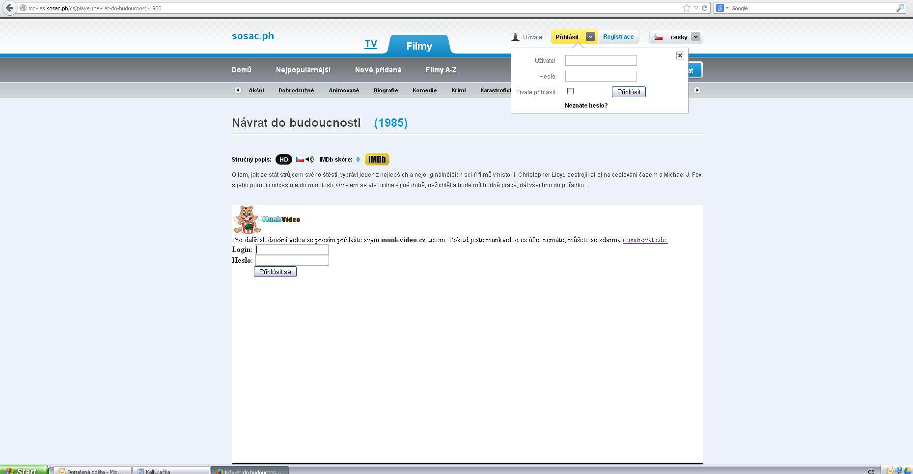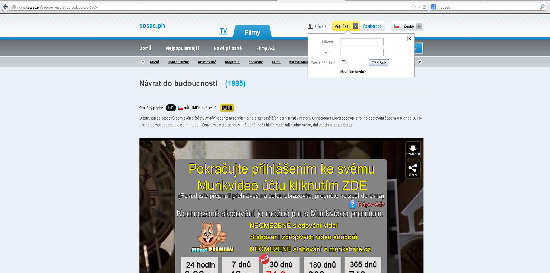 přímo na sosac.ph registraci nemám. Nikdy jí to po mě nechtělo. Pokud se mi má rozjet nějaké z videí, chce to po mě napsat jméno a heslo pro munkvideo.cz. To mám zaregistrované a předplacené. Naťukám údaje a jede to.