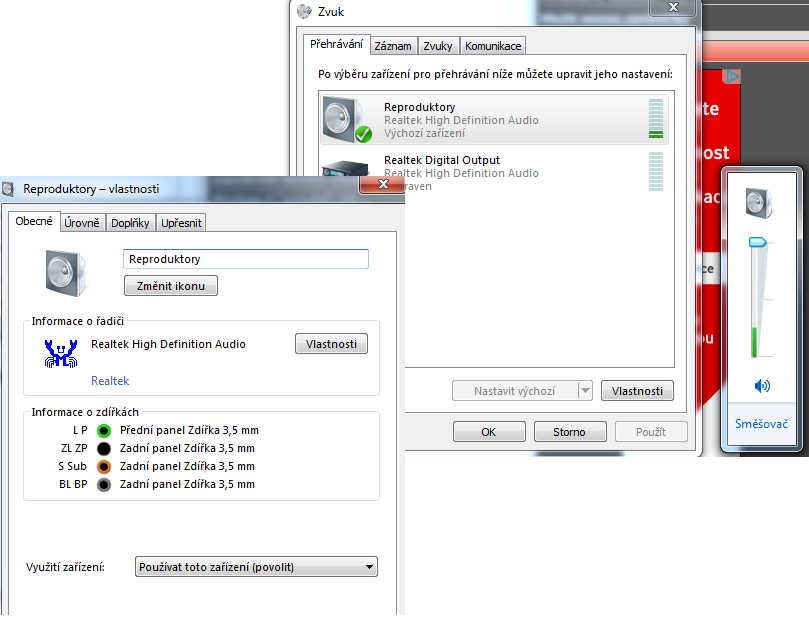 Mám nastavené na Realtek HD Audio. To bylo první kde sem zkoušel různě nastavovat bohužel marně.