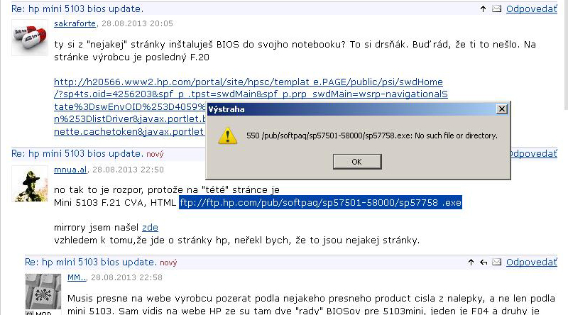 Musis presne na webe vyrobcu pozerat podla nejakeho presneho product cisla z nalepky, a ne len podla mini 5103. Sam vidis na webe HP ze su tam dve "rady" BIOSov pre 5103mini, jeden je F04 a druhy je F20, a nie su zamenitelne, ptz je tam v tom notebooku iny HW. Oba su oznacene mini 5103 ale HW je odlisny.