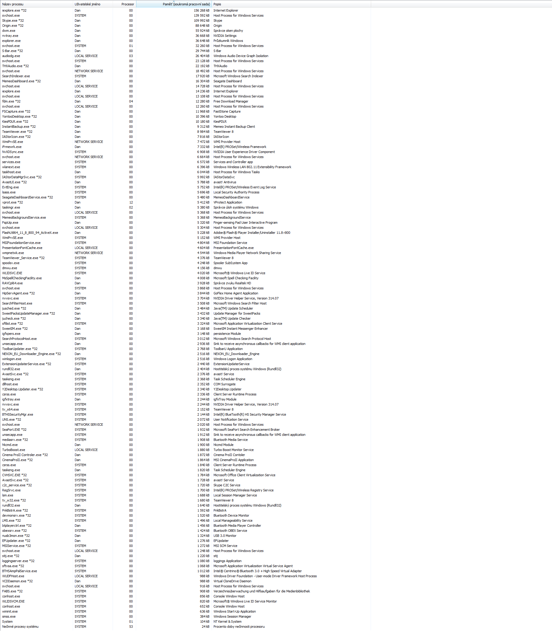 To jsi mi moc neodpověděl. Nechceš sem dát snímky správce úloh seřazené podle vytížení procesoru a p…