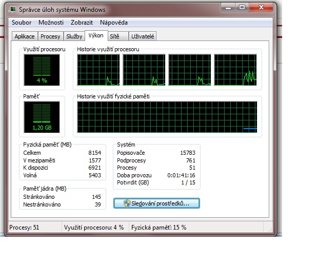 Jaké procesy nejvíce vytěžují paměť? Jaké je vytížení procesoru?