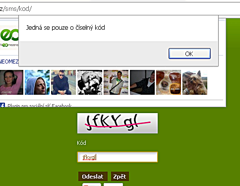 Tohle mi ukazuje SMSmania když chci odeslat SMSku