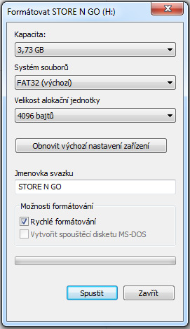 4. Objeví se formátovací utilita