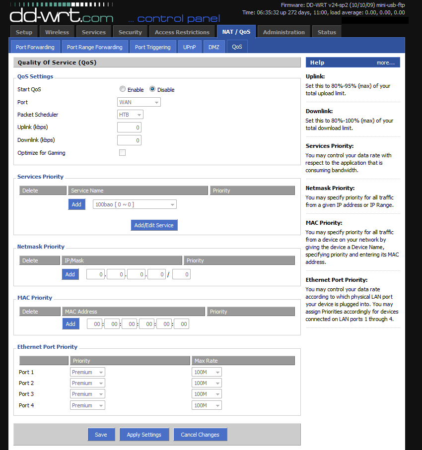Mám připojení k internetu s rychlostí okolo 18Mb/s (UPC 30M) a chtěl bych QoS nastavit tak, aby bylo prioritizováno brouzdání po internetu a VOIP oproti stahování (http, torrent), hraní her a hlavně online streamu videa z internetu (seriálů), a to u všech počítačů v síti. A dále aby oproti VOIP byl ještě prioritizován lokální provoz na LANu na NAS server, který má v síti pevnou adresu a kam se ukládají zálohy. A ideálně ještě v případě "přetlaku", aby moje IP adresa (statická podle MAC) byla prioritizována oproti ostatním.