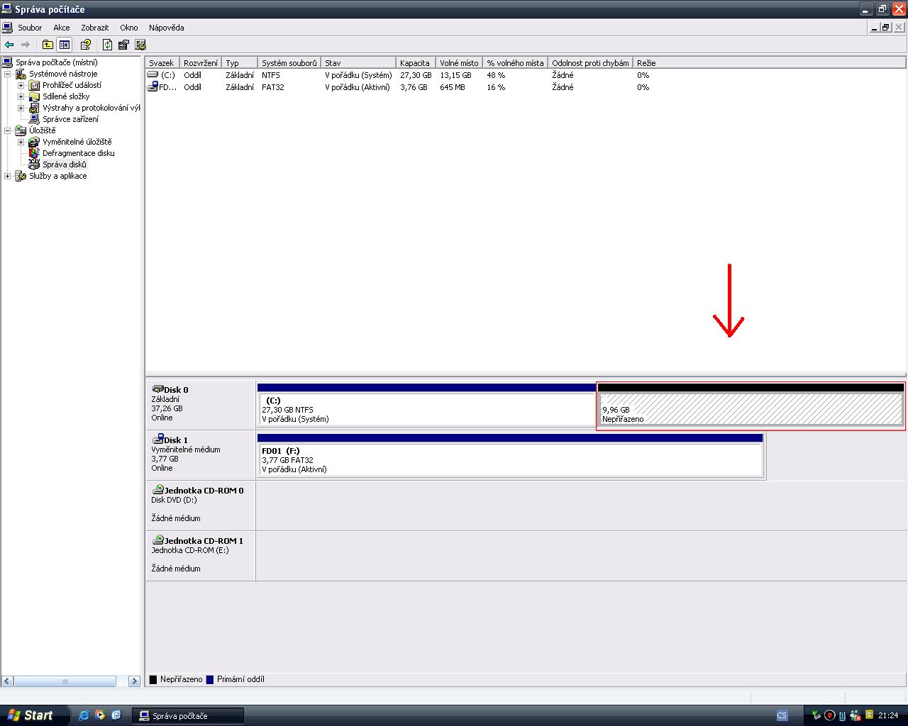 Protoze mas Windows XP, budes muset pouzit nejaky nastroj na praci s disky - napr. tebou jiz zminova…